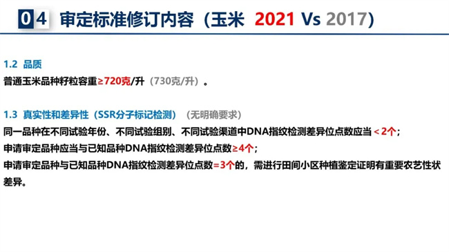 2021年標準的修訂著眼于解決品種同質(zhì)化問題,在品種產(chǎn)量、抗性、DNA指紋位點差異數(shù)上提高了相應(yīng)的技術(shù)要求,有利于激勵原始創(chuàng)新,提升品種選育水平,是加強種業(yè)知識產(chǎn)權(quán)保護中的一項重要內(nèi)容。