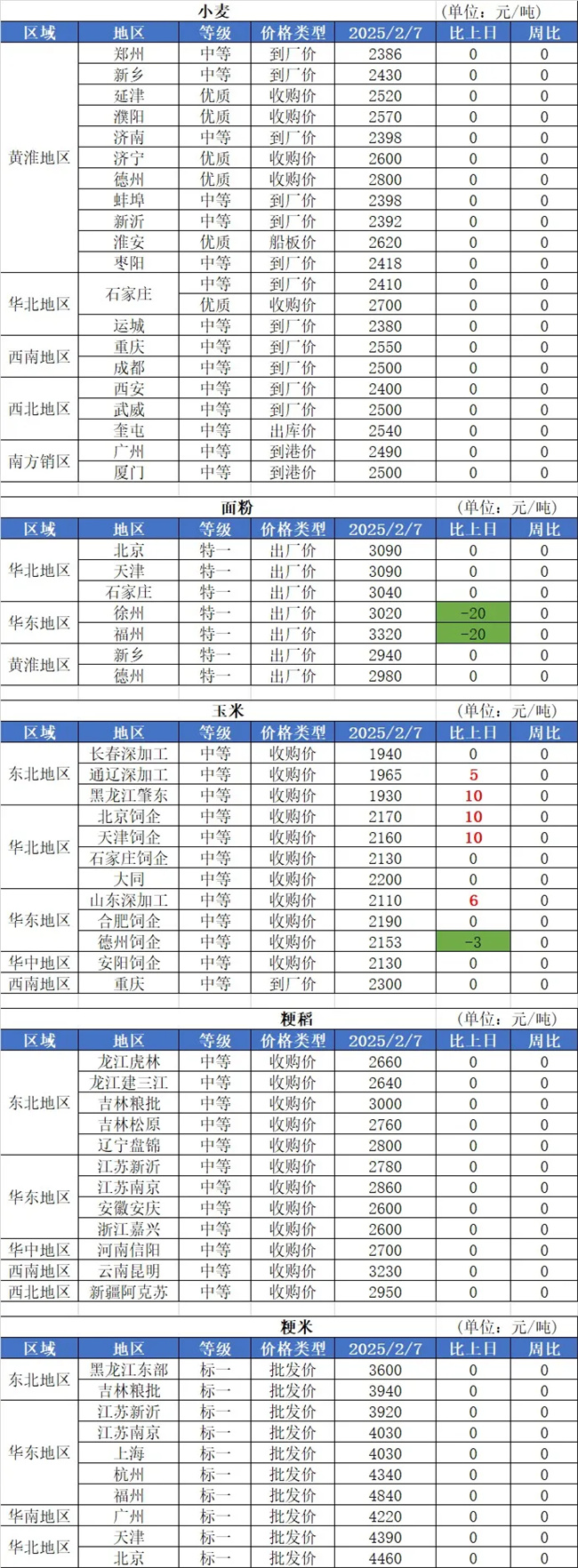 2、2月7日,山東地區(qū)部分玉米深加工企業(yè)玉米收購報價下調(diào),其中諸城興貿(mào)掛牌收2150元/噸,較昨日下調(diào)20元/噸;成武大地掛牌收2100元/噸,較昨日下調(diào)10元/噸;七星檸檬掛牌收2176元/噸,較昨日下調(diào)14元/噸。