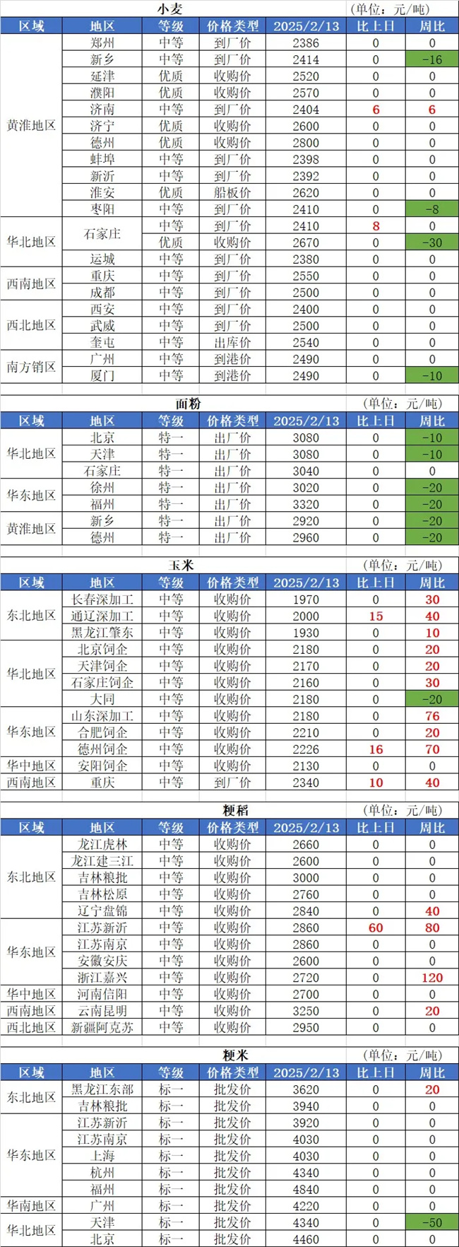 1、2月13日,國內(nèi)小麥市場平穩(wěn)偏強運行。其中,發(fā)達面粉濰坊漲5厘,含票價1.195元/斤;商河金沙河漲3厘,含票價1.202元/斤;安陽益海嘉里漲5厘,含票價1.2元/斤;石家莊益海嘉里漲5厘,含票價1.19元/斤。