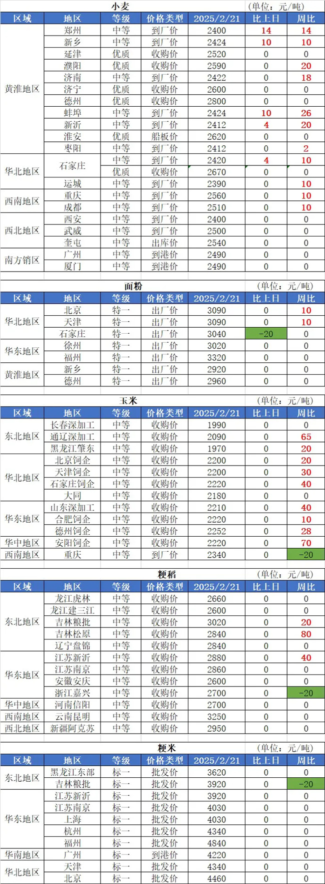 1、2月21日,國內小麥市場平穩(wěn)偏強運行。其中,鄭州益海嘉里漲6厘,含票價1.196元/斤;光牌面業(yè)漲2厘,含票價1.21元/斤;東明五得利(新廠)漲3厘,含票價1.207元/斤;東明五得利(老廠)漲4厘,含票價1.21元/斤。