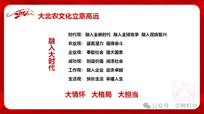大北農(nóng)企業(yè)文化是華種科技發(fā)展的精神燈塔,“強農(nóng)報國、爭創(chuàng)第一、共同發(fā)展”的核心理念貫穿于企業(yè)發(fā)展的每一個脈絡(luò)。在這種文化的激勵下,全體員工緊密團結(jié),以推動農(nóng)業(yè)現(xiàn)代化進程、助力農(nóng)民增收致富為使命,全身心投入到種業(yè)技術(shù)創(chuàng)新與服務(wù)優(yōu)化中,為實現(xiàn)農(nóng)業(yè)強國的宏偉目標添磚加瓦。
