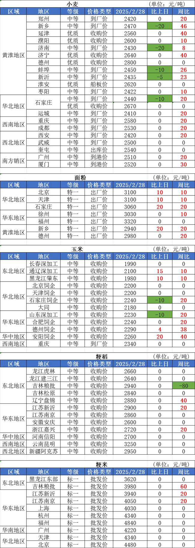 1、2月28日,國內(nèi)小麥市場平穩(wěn)偏弱運(yùn)行。其中,渦陽金沙河跌5厘,含票價(jià)1.225元/斤;德州益海嘉里跌5厘,含票價(jià)1.215元/斤;禹城五得利跌5厘,含票價(jià)1.22元/斤;單縣飛翔跌7厘,含票價(jià)1.233元/斤。