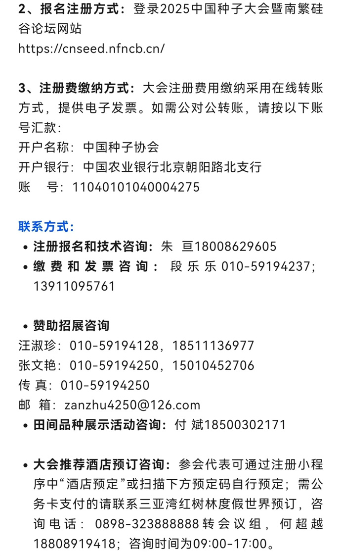 讓企業(yè)在種業(yè)振興中“唱主角”,本屆大會集結(jié)國內(nèi)外種業(yè)頭部企業(yè),隆平高科、眾人信農(nóng)業(yè)科技、中國種子集團(tuán)、荃銀高科、登海種業(yè)、兆和種業(yè)、國投種業(yè)、大北農(nóng)創(chuàng)種科技、海墾集團(tuán)、崖州灣科技城等超過300家種企及相關(guān)單位將以多種形式參會。相關(guān)閱讀>>僅剩2個(gè)論壇贊助名額!這場國家級種業(yè)盛會招展火熱進(jìn)行中