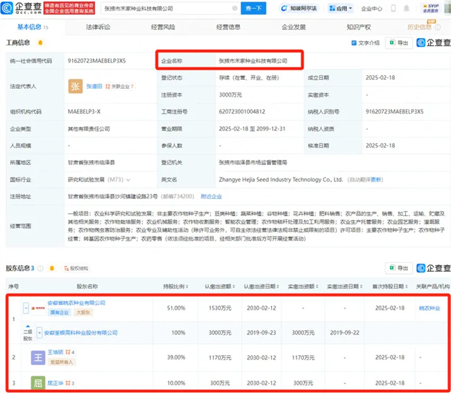 無獨有偶。近日,荃銀高科、王培碩等投資成立種業(yè)科技公司——張掖市禾家種業(yè)科技有限公司,法定代表人為張道田,注冊資本為3000萬元。經(jīng)營范圍包含:農(nóng)業(yè)科學(xué)研究和試驗發(fā)展;豆類種植;蔬菜種植;谷物種植;花卉種植;肥料銷售;主要農(nóng)作物種子生產(chǎn);農(nóng)作物種子經(jīng)營等。