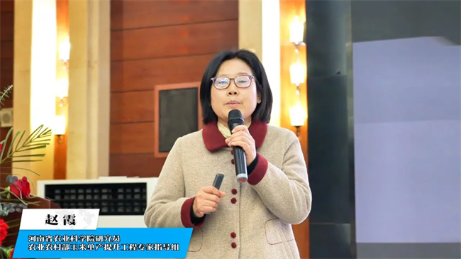 會(huì)議邀請(qǐng)河南省農(nóng)業(yè)科學(xué)院、國(guó)家農(nóng)業(yè)農(nóng)村部玉米單產(chǎn)提升工程指導(dǎo)組專家趙霞研究員做玉米單產(chǎn)提升賦能報(bào)告。報(bào)告中提出了玉米單產(chǎn)提升“一二五”理論,即一個(gè)目標(biāo)、兩條路徑、五條關(guān)鍵措施,圍繞提升玉米單產(chǎn),實(shí)行增加密度和精準(zhǔn)調(diào)控,實(shí)施好種提密、精播滴水、適時(shí)化控、全程綜防、機(jī)械晚收等進(jìn)行培訓(xùn)。趙霞研究員指出,玉米單產(chǎn)提升需結(jié)合高效育種技術(shù)與科學(xué)種植模式,而偉科812的品種特性及推廣模式正契合這一目標(biāo)。希望在座的各位經(jīng)銷商朋友,在推廣偉科812優(yōu)良品種的同時(shí),加強(qiáng)技術(shù)服務(wù)引導(dǎo),賦予品種更多的高產(chǎn)高效栽培技術(shù),挖掘優(yōu)良品種潛力,助力糧食單產(chǎn)提升,為農(nóng)民增產(chǎn)、農(nóng)業(yè)增效做出更大貢獻(xiàn)!