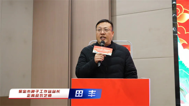 保定市種子工作站站長田豐致辭中對眾人信農(nóng)業(yè)在科技創(chuàng)新方面取得的顯著成果給予了高度評價。他指出,種子經(jīng)銷商作為種子流通的關(guān)鍵環(huán)節(jié),應(yīng)緊跟市場需求,精準(zhǔn)選擇廣適多抗的優(yōu)質(zhì)品種,并嚴(yán)格把控種子質(zhì)量關(guān)。在此基礎(chǔ)上,要將優(yōu)良品種與優(yōu)質(zhì)服務(wù)相結(jié)合,充分挖掘優(yōu)良品種的潛力,從而贏得廣大客戶的信賴與支持。他表示,作為農(nóng)業(yè)服務(wù)部門,將全力做好服務(wù),為種子經(jīng)銷商和農(nóng)業(yè)從業(yè)者提供全方位的支持與保障,共同推動農(nóng)業(yè)產(chǎn)業(yè)的高質(zhì)量發(fā)展。
