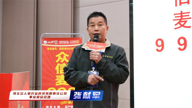 眾人信河北事業(yè)部總經(jīng)理張獻(xiàn)軍對2025年眾信麥998扶持政策進(jìn)行了深入解讀。他著重強調(diào)了公司為加強市場管控所采取的一系列措施,詳細(xì)闡述并解讀了公司就眾信麥998在優(yōu)化渠道、技術(shù)賦能以及線上線下融合等營銷戰(zhàn)略方面的具體舉措。最后,張總表示,公司愿與各位大商聚力同行,攜手共進(jìn),共同開創(chuàng)美好的未來。