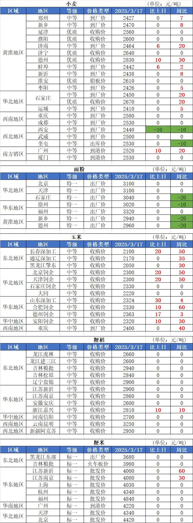 2、3月17日,部分深加工企業(yè)調(diào)整玉米收購報價,其中山東壽光金玉米收2224元/噸,較昨日提高30元/噸;山東保齡寶玉米掛牌價2290元/噸,較昨日提高10元/噸;黑龍江綏化昊天玉米干糧收2085元/噸,較昨日漲20元/噸。