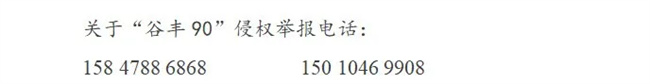 自2025年3月17日起,任何單位或個(gè)人在未獲得谷豐公司重新書面形式授權(quán)的情況下,擅自開展“谷豐90”生產(chǎn)、經(jīng)營活動(dòng)的,均構(gòu)成惡意侵權(quán)。谷豐公司將依法追究其法律責(zé)任,并要求其承擔(dān)相應(yīng)的懲罰性賠償責(zé)任。谷豐公司保留采取一切法律手段維護(hù)自身合法權(quán)益的權(quán)利,追究侵權(quán)者的一切法律責(zé)任,包括但不限于刑事責(zé)任。