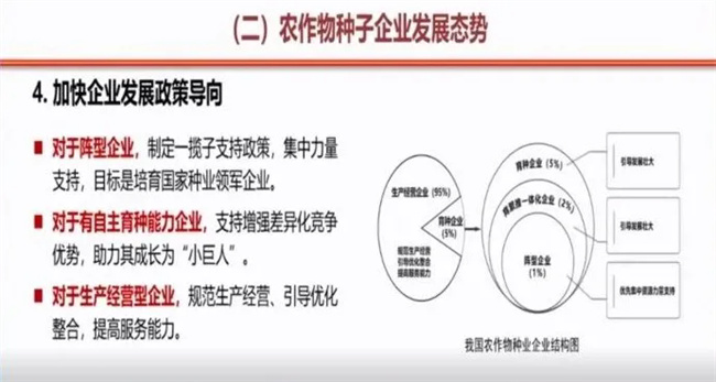 1.對于陣型企業(yè),制定一攬子支持政策,集中力量支持,目標(biāo)是培育國家種業(yè)領(lǐng)軍企業(yè)。