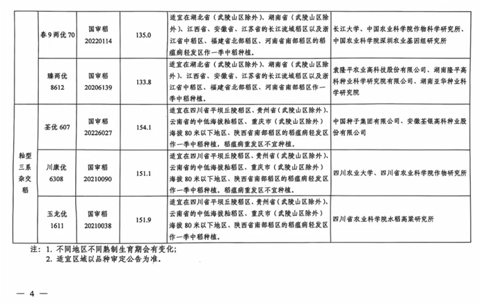 同時(shí),因推廣面積未達(dá)要求,天優(yōu)998、桂農(nóng)占、新兩優(yōu)6 號(hào)、遼星1號(hào)、天優(yōu)3301、連粳7號(hào)、準(zhǔn)兩優(yōu)608、德香4103、Y兩優(yōu)2號(hào)、Y兩優(yōu) 5867、五豐優(yōu)615、蜀優(yōu)217、和兩優(yōu)713、萬太優(yōu)3158等14個(gè)品種不再冠名超級(jí)稻。目前,經(jīng)農(nóng)業(yè)農(nóng)村部確認(rèn)、可冠名超級(jí)稻的水稻品種共128個(gè)(附件2)。