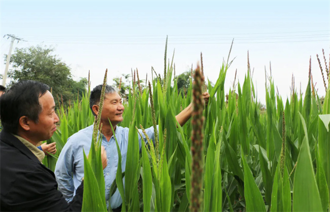 王元東研究員與北京豐度高科團(tuán)隊(duì)查看母本擴(kuò)繁田長(zhǎng)勢(shì)情況