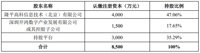 新公司注冊(cè)資本8500萬元人民幣,股權(quán)結(jié)構(gòu)為:隆平信息持股47.06%、深開鴻持股17.65%、員工持股平臺(tái)持股35.29%。