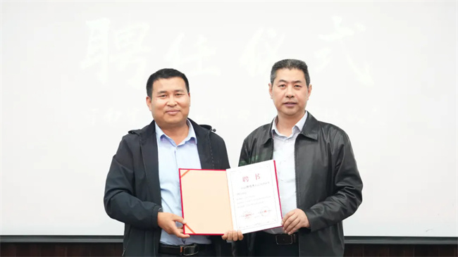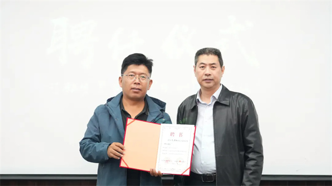 ▲寶景農(nóng)業(yè)、豐祺農(nóng)業(yè)董事長(zhǎng)高宏偉分別為兩位科技副總頒發(fā)聘任證書(shū)