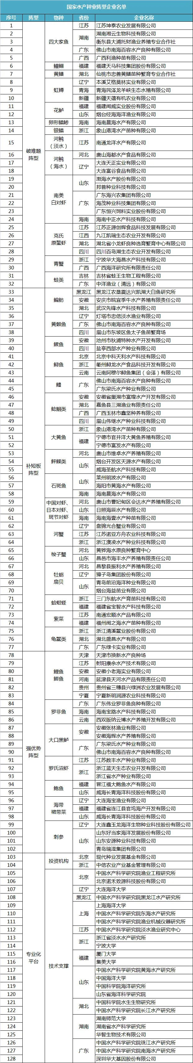 3.國(guó)家水產(chǎn)種業(yè)陣型企業(yè)名單