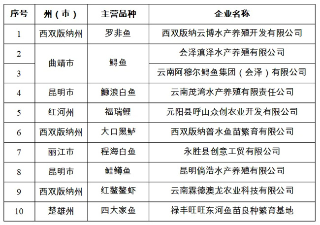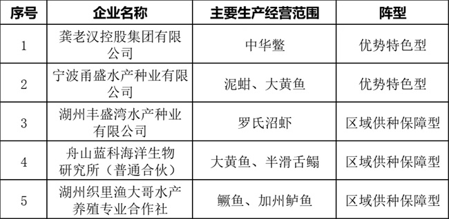 省級(jí)水產(chǎn)種業(yè)陣型企業(yè)名單