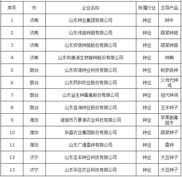山東省農(nóng)業(yè)行業(yè)領(lǐng)軍企業(yè)名單(種業(yè)企業(yè))
