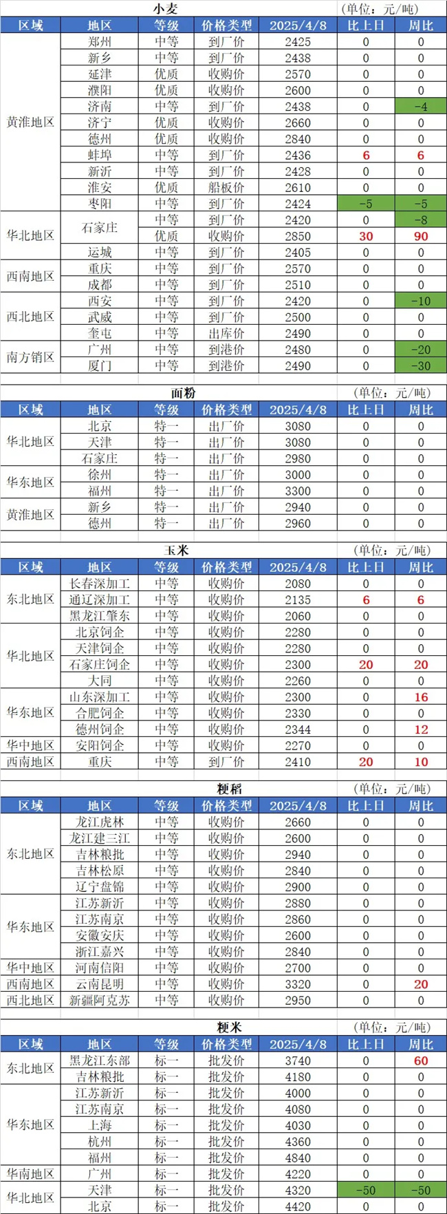 1、4月8日,小麥價格穩(wěn)中偏弱調(diào)整。其中,天邦糧油跌5厘,含票1.212元/斤;雄縣好面緣跌4厘,含票1.21元/斤;周口五得利跌3厘,含票1.217元/斤;渦陽金沙河漲3厘,含票1.218元/斤。
