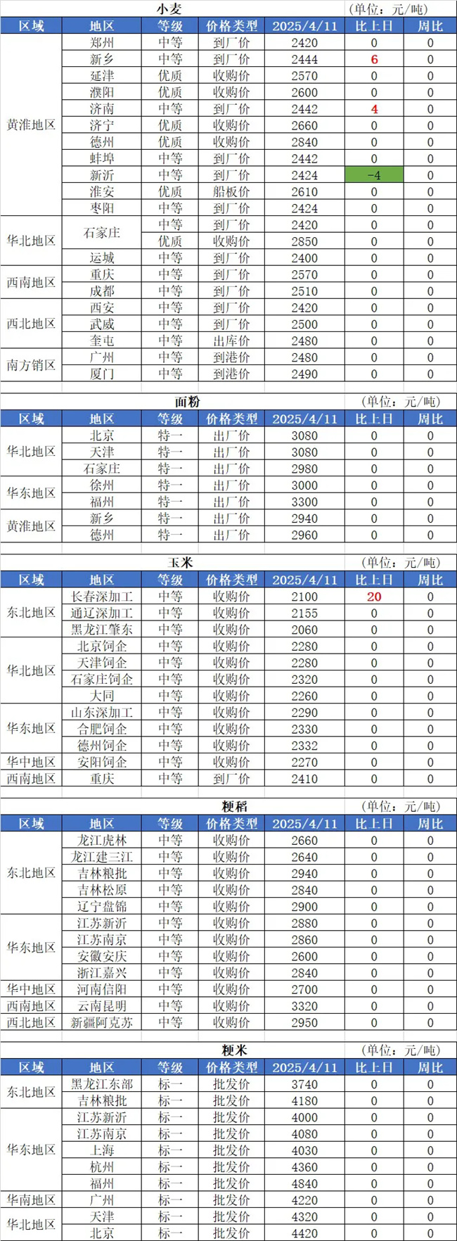 2、4月11日,東北部分玉米深加工企業(yè)收購(gòu)掛牌價(jià)格調(diào)整:其中吉林燃料乙醇玉米干糧收2100元/噸,較昨日上調(diào)20元/噸;中糧榆樹(shù)公司玉米干糧收2110元/噸,較昨日上漲20元/噸;中糧肇東公司收2100元/噸,較昨日上漲10元/噸。