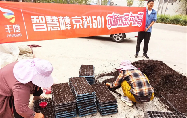 400公里之隔的河南省商丘市睢陽區(qū),智慧棒501服務團隊正采用育秧盤育秧方式,準備示范田的播種。育秧盤育秧大大提高了示范播種質(zhì)量,提升了示范田建設標準,通過科學的種植管理達到最好的觀摩田效果。技術員們熟練的進行營養(yǎng)土的配制,擺盤和播種,同時技術負責人就培苗床管理、移栽要點、移栽規(guī)劃等問題做現(xiàn)場培訓。