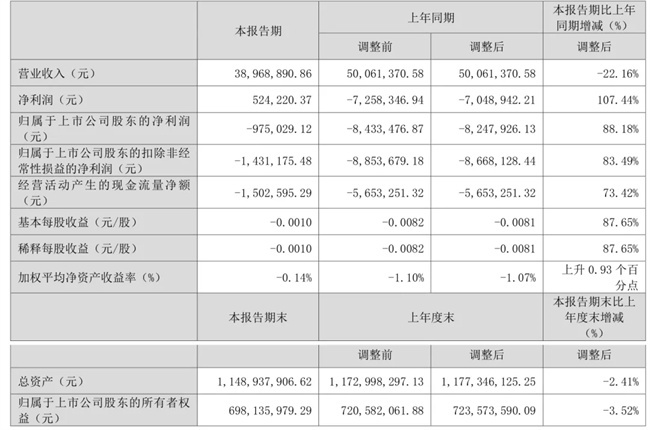 同日,神農(nóng)種業(yè)還披露了2025年第一季度報告。公司實現(xiàn)營業(yè)總收入3896.89萬元,同比下降22.16%;歸母凈利潤虧損97.5萬元,上年同期虧損824.79萬元;扣非凈利潤虧損143.12萬元,上年同期虧損866.81萬元;經(jīng)營活動產(chǎn)生的現(xiàn)金流量凈額為-150.26萬元,上年同期為-565.33萬元;報告期內(nèi),神農(nóng)種業(yè)基本每股收益為-0.001元,加權(quán)平均凈資產(chǎn)收益率為-0.14%。