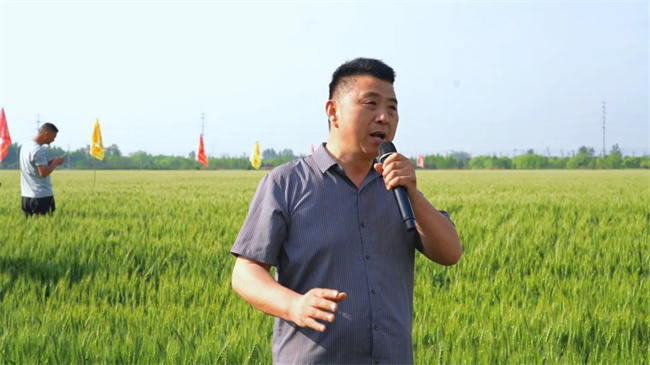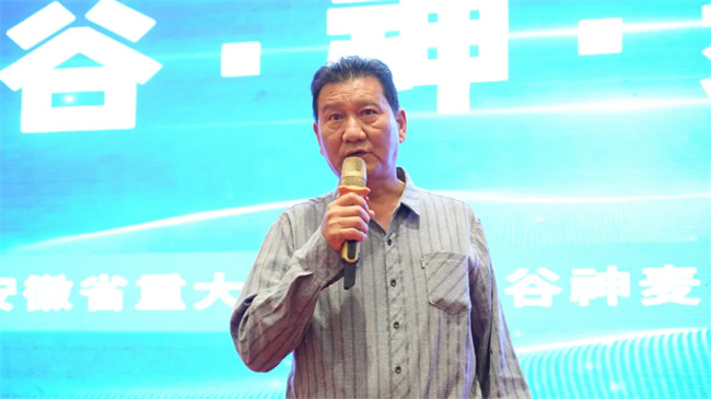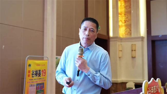 渦陽縣農(nóng)業(yè)農(nóng)村局黨組成員、亳州市農(nóng)科院院長馬振秀在會上致歡迎詞,對與會嘉賓表示熱烈歡迎,并強調(diào)了高產(chǎn)強筋麥—谷神麥19對于農(nóng)業(yè)高質(zhì)量發(fā)展與助力鄉(xiāng)村振興具有重要意義。谷神種業(yè)董事長王軍詳細匯報了谷神麥19的推廣發(fā)展規(guī)劃,從品種繁育、種植技術(shù)推廣到市場拓展等方面,全面闡述了未來的發(fā)展方向,為谷神麥19的進一步推廣描繪了宏偉藍圖。