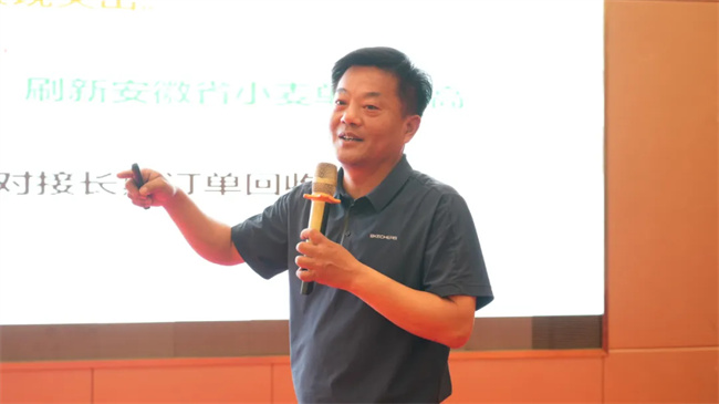 會議期間,一系列精彩的學術(shù)報告和經(jīng)驗分享更是將活動推向高潮。安徽農(nóng)業(yè)大學農(nóng)學院院長、安徽省小麥產(chǎn)業(yè)體系首席專家李金才教授,以《優(yōu)質(zhì)強筋小麥高產(chǎn)栽培技術(shù)》為題,深入講解了優(yōu)質(zhì)強筋小麥的生長特性、高產(chǎn)栽培的關(guān)鍵技術(shù)要點以及田間管理的注意事項,幫助掌握了更加科學、精準的種植方法,為其在實際生產(chǎn)中實現(xiàn)高產(chǎn)優(yōu)質(zhì)提供了強有力的理論支持。