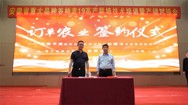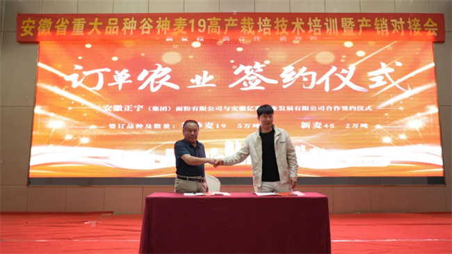 而產(chǎn)銷對接環(huán)節(jié)更是成果豐碩。會議現(xiàn)場,面粉加工企業(yè)、糧貿(mào)企業(yè)與種植戶、種子經(jīng)銷商等達成了多項合作協(xié)議,完成谷神麥19產(chǎn)銷訂單17萬噸。不僅促進了谷神麥19的市場高效流通,加強了產(chǎn)業(yè)鏈上下游的合作。更為谷神麥19的高產(chǎn)優(yōu)勢和優(yōu)質(zhì)特性能夠更好地轉(zhuǎn)化為經(jīng)濟效益,實現(xiàn)從田間到餐桌的無縫對接,推動了小麥產(chǎn)業(yè)的高質(zhì)量發(fā)展。