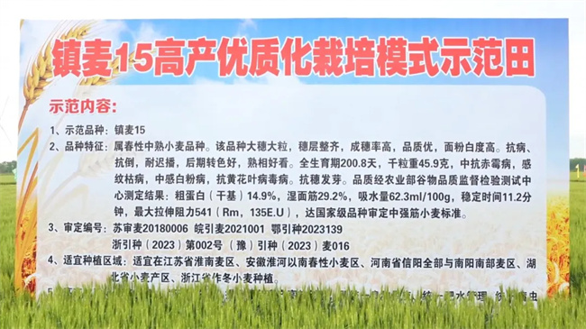 江蘇省農(nóng)技推廣總站副站長(zhǎng)王龍俊在田間觀摩現(xiàn)場(chǎng)表示,鎮(zhèn)麥15具備高產(chǎn)、穩(wěn)產(chǎn)、抗逆性強(qiáng)等顯著特點(diǎn),由于產(chǎn)量過(guò)硬,迅速成為淮南區(qū)域大品種。