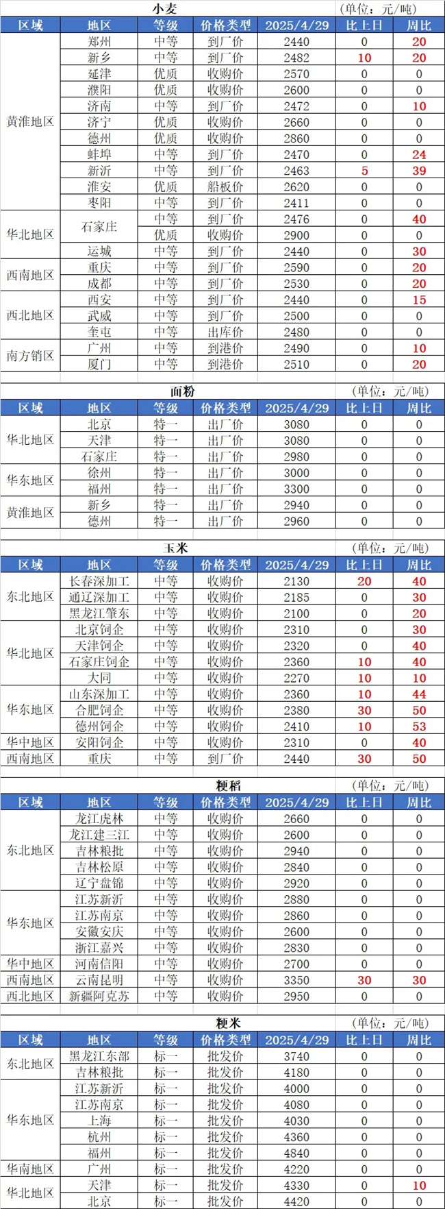 2、4月29日,我國多個玉米深加工企業(yè)玉米收購價格調(diào)整:其中公主嶺中糧玉米收購報價2140元/噸,較昨日上漲40元/噸;榆樹中糧玉米收購報價2140元/噸,較昨日上漲20元/噸;梅河口酒精玉米干糧收2170元/噸,較昨日上漲30元/噸。