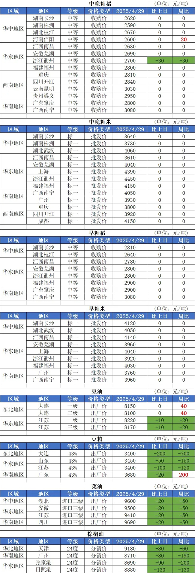 3、4月29日,最低收購價稻谷拍賣共投放約61.7萬噸,成交約12.5萬噸。其中早秈稻投放約1.8萬噸,無成交;中晚秈稻投放約30萬噸,成交約0.4萬噸,成交均價2590元/噸;粳稻投放約29.9萬噸,成交約12萬噸,成交均價2673元/噸。