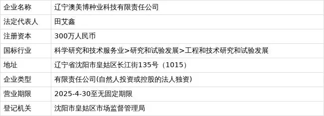天眼查App顯示,近日,遼寧澳美博種業(yè)科技有限責(zé)任公司成立,法定代表人為田艾鑫,注冊(cè)資本300萬(wàn)人民幣,由海南靚美種業(yè)科技有限公司全資持股。