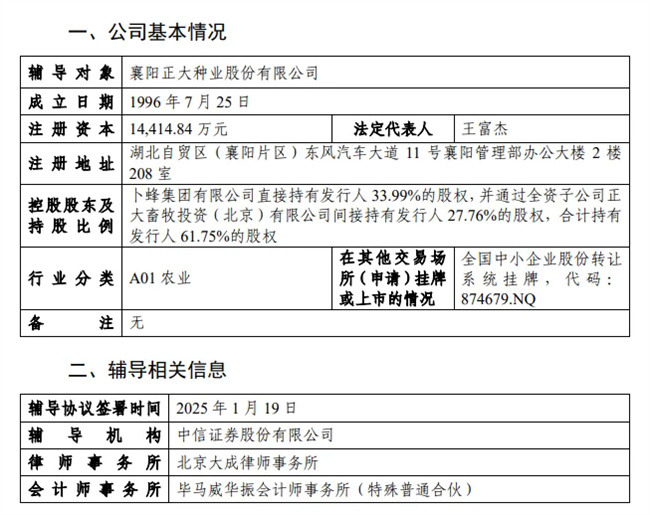 2024年底,襄陽(yáng)正大種業(yè)股份有限公司正式在全國(guó)中小企業(yè)股份轉(zhuǎn)讓系統(tǒng)(新三板)創(chuàng)新層掛牌。