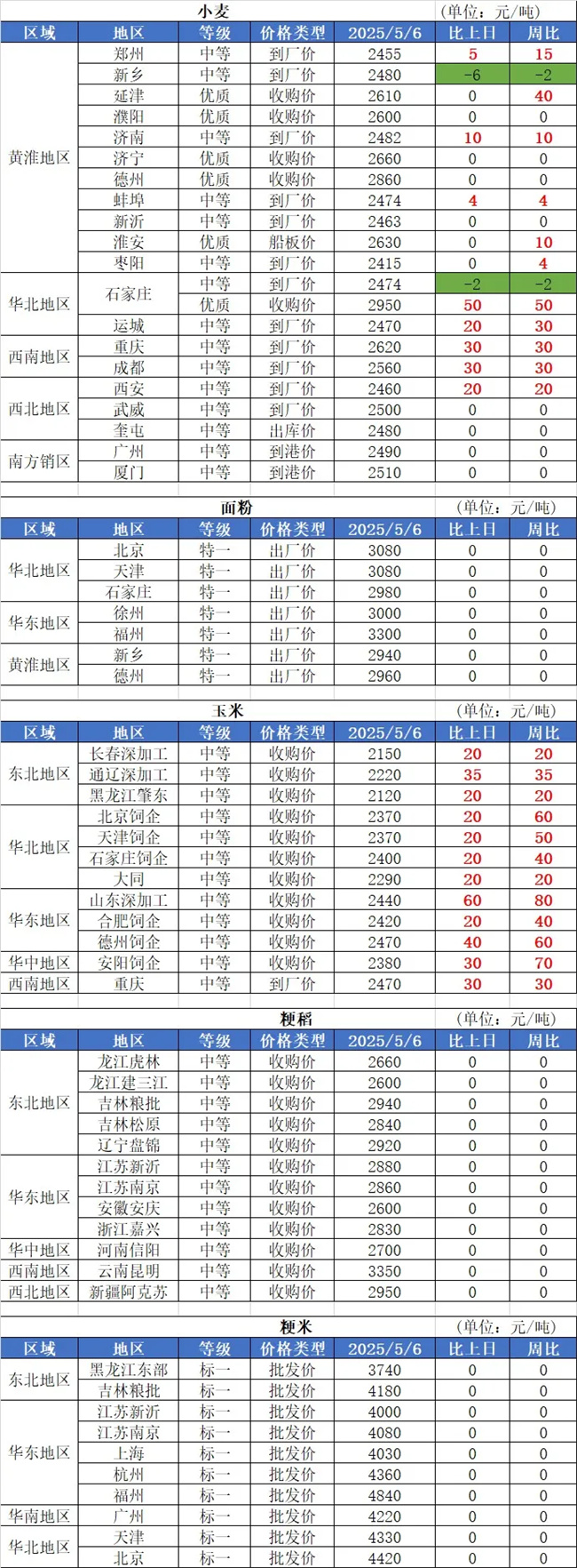 2、5月6日,我國部分玉米深加工企業(yè)玉米收購報價調(diào)整:其中河北衡水中糧玉米收購報價2300元/噸,環(huán)比提高20元/噸;吉林梅河口市阜康酒精玉米收購報價2200元/噸,環(huán)比上漲20元/噸;吉林梅花收2170元/噸,環(huán)比上漲20元/噸。