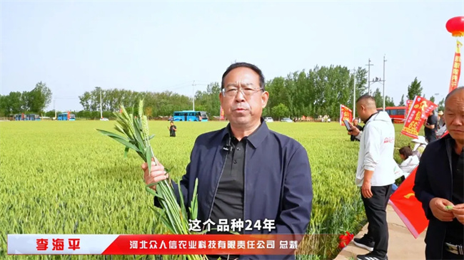 眾人信公司總裁李海平介紹,眾信656是繼眾信麥998之后,公司推出的又一重要單品。該品種于2024年通過國家黃淮南片麥區(qū)審定,具有株高適中(約77厘米)、畝穗數(shù)多(38.2萬穗)、穗粒數(shù)多(40.1粒)、千粒重高(47.1克)等突出特點,是公司主選的大穗型代表品種。李海平總裁對眾信656的未來發(fā)展充滿信心,相信在大家的共同努力下,它必將成為小麥領(lǐng)域的“芯”領(lǐng)秀。