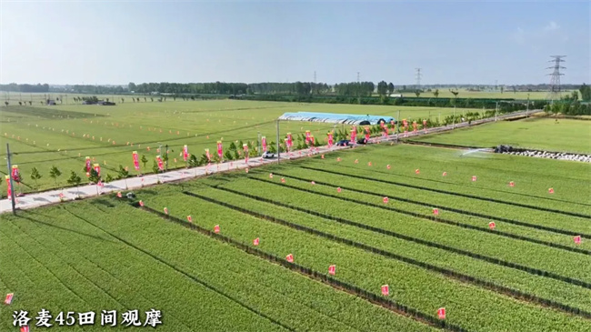 洛麥45(國審麥20243065)作為一款半冬性矮桿大穗、多抗廣適型小麥新品種,具備顯著優(yōu)勢(shì)。其高產(chǎn)穩(wěn)產(chǎn),生產(chǎn)試驗(yàn)較對(duì)照周麥36增產(chǎn)6.2%;矮桿大穗,平均株高74.6cm,莖稈粗壯、彈性好,抗倒伏能力極好,在三年72個(gè)試點(diǎn)中無一點(diǎn)倒伏;籽粒飽滿度好,商品性優(yōu)。尤為值得關(guān)注的是,洛麥45融入野草基因,并聚合了抗旱基因、抗穗發(fā)芽基因、抗條銹基因,綜合抗逆性更強(qiáng)。這使得它苗期抗寒、抗旱、后期耐高溫,綜合抗病性好、根系活力強(qiáng),對(duì)多變的自然環(huán)境有著出色的適應(yīng)能力。