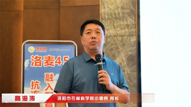 會(huì)上,洛麥45育種團(tuán)隊(duì)負(fù)責(zé)人、洛陽市農(nóng)林科學(xué)院小麥所所長(zhǎng)高海濤研究員詳細(xì)介紹了洛麥45的育種過程,從基因融合與聚合的角度解析了其優(yōu)良特性的形成原因,使與會(huì)人員對(duì)該品種的綜合優(yōu)勢(shì)有了更深入的了解與認(rèn)識(shí)。