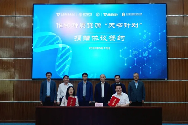 啟動(dòng)會(huì)上,劉現(xiàn)武代表北京中國農(nóng)業(yè)科學(xué)院農(nóng)業(yè)發(fā)展基金會(huì)與重慶騰訊可持續(xù)發(fā)展基金會(huì)簽署捐贈(zèng)協(xié)議,并為其頒發(fā)捐贈(zèng)證書。作科所、騰訊公司、北京通州國際種業(yè)科技有限公司簽署三方合作協(xié)議。根據(jù)協(xié)議,騰訊公司將捐贈(zèng)3000萬元,支持構(gòu)建水稻、小麥、玉米、大豆四大糧食作物可覆蓋全球95%以上多樣性的核心種質(zhì),創(chuàng)建基因型-表型對(duì)齊的標(biāo)準(zhǔn)數(shù)據(jù)集,建立作物基因資源庫,建設(shè)作物智能精準(zhǔn)設(shè)計(jì)育種平臺(tái),推動(dòng)形成“資源-數(shù)據(jù)-挖掘-設(shè)計(jì)”一體化育種體系,大幅提升基因資源規(guī)?;诰蚺c利用效率,促進(jìn)我國作物育種的智能化、數(shù)字化轉(zhuǎn)型和高質(zhì)量發(fā)展。