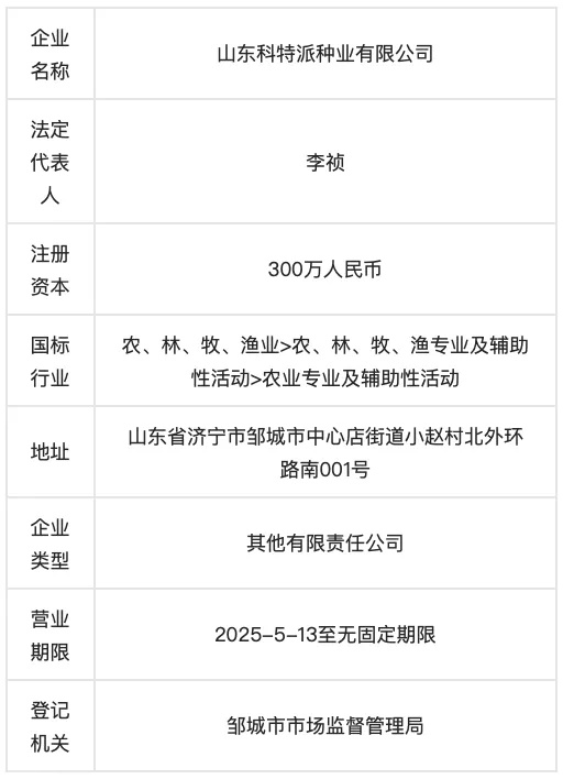 山東科特派種業(yè)有限公司成立