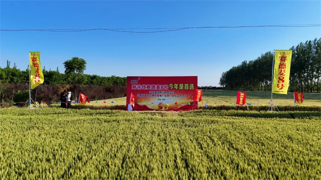 賽德麥8號,作為河南賽德種業(yè)有限公司匠心培育的小麥品種,集成了矮稈、高產(chǎn)、優(yōu)質(zhì)的基因優(yōu)勢,擁有綜合抗性強、產(chǎn)量三要素協(xié)調(diào)、增產(chǎn)潛力巨大等顯著特性。該品種于2019年通過河南省審定,2021年順利通過國家黃淮南片麥區(qū)審定。自推向市場以來,憑借高產(chǎn)優(yōu)質(zhì)、多抗廣適的特性,在種業(yè)市場中脫穎而出,備受青睞。2023年6月9日,專家組在滑縣進行實收測產(chǎn),賽德麥8號畝產(chǎn)高達800.3公斤;2024年6月3日,在溫縣的實收畝產(chǎn)更是達到821.9公斤。連續(xù)兩年,賽德麥8號榮列河南省小麥布局重要品種,并于2024年成功獲批河南省重大品種研發(fā)推廣應(yīng)用一體化項目。