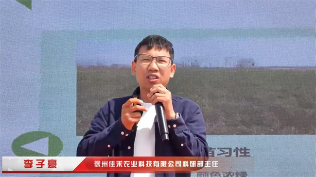 佳禾農(nóng)業(yè)科研部主任李子豪詳細(xì)介紹了徐麥2100的育種過程,從聚合中麥875/矮抗58基因的角度解析了其優(yōu)良特性的形成原因。徐麥2100高產(chǎn)、抗逆、廣適的品種優(yōu)勢(shì),使與會(huì)人員對(duì)該品種的綜合優(yōu)勢(shì)有了更深入的了解與認(rèn)識(shí)。