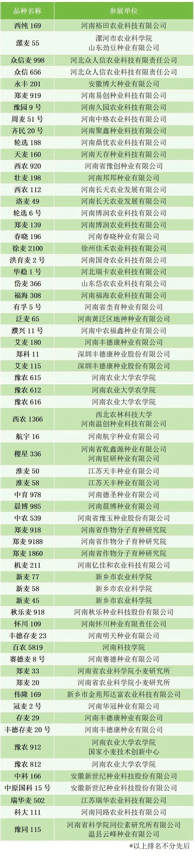 本次地展大會(huì)設(shè)置了抗赤霉病組、強(qiáng)筋優(yōu)質(zhì)組、紫糯組、晚播早熟組、優(yōu)質(zhì)中筋組、高產(chǎn)攻關(guān)組、河南省示范組等7個(gè)不同類別,涵蓋黃淮7省224家單位的481個(gè)小麥新品種。這些新品種不僅代表了黃淮麥區(qū)小麥品種創(chuàng)新的最高水平,更彰顯了未來小麥發(fā)展的方向。