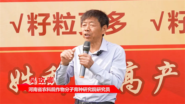 在觀摩現(xiàn)場,鄭麥182育種團(tuán)隊(duì)負(fù)責(zé)人、河南省分子育種研究院吳政卿研究員詳細(xì)介紹了該品種的顯著優(yōu)勢。鄭麥182擁有“三好”特性,冬季抗寒性強(qiáng),耐春季低溫能力突出,成熟落黃性狀優(yōu)良;同時(shí)具備“三高”優(yōu)勢,增產(chǎn)潛力大,產(chǎn)量穩(wěn)定且適應(yīng)性廣,容重高。在當(dāng)前種業(yè)市場競爭激烈、品種繁多的形勢下,吳政卿研究員呼吁富方種業(yè)與各位經(jīng)銷商緊密攜手,構(gòu)建多元化、高效的宣傳體系。通過精準(zhǔn)宣傳,讓市場充分“聽得見”“看得到”鄭麥182在田間的突出表現(xiàn),以品種的卓越實(shí)力贏得廣大農(nóng)民的信任。不僅有助于鄭麥182的廣泛推廣,更為國家實(shí)現(xiàn)糧食千億斤單產(chǎn)提升目標(biāo)、確保糧食安全提供了堅(jiān)實(shí)的品種保障。