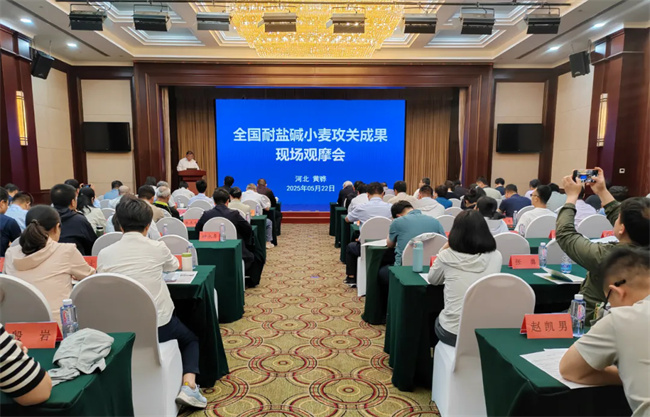 5月21-22日,全國耐鹽堿小麥品種攻關成果觀摩會在河北滄州召開。會議旨在深入貫徹習近平總書記關于“發(fā)揮科技創(chuàng)新的關鍵作用,加強適宜鹽堿地作物品種開發(fā)推廣,有效拓展適宜作物播種面積”重要指示精神,加快耐鹽堿小麥品種攻關和示范推廣,展示和研討我國小麥耐鹽堿育種聯(lián)合攻關成果。國家小麥育種聯(lián)合攻關組首席專家許為鋼院士,國家小麥產(chǎn)業(yè)技術體系首席科學家、耐鹽堿作物育種聯(lián)合攻關組秘書長、作科所黨委書記劉錄祥研究員出席會議。
