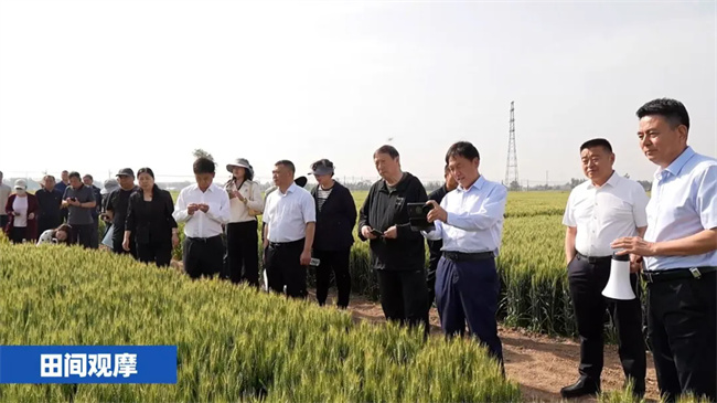 河北省農(nóng)業(yè)農(nóng)村廳二級巡視員張志剛出席會議并講話,國內(nèi)知名專家學(xué)者、種業(yè)推廣及食品加工企業(yè)代表等齊聚一堂,圍繞冀緣3949小麥的推廣種植、技術(shù)升級、開發(fā)應(yīng)用、市場前景及產(chǎn)業(yè)化發(fā)展等議題展開深入交流討論。會前,與會代表前往河北旺豐種業(yè)展示基地,實(shí)地觀摩了冀緣3949目前的大田長勢,對其生長情況有了直觀的了解。