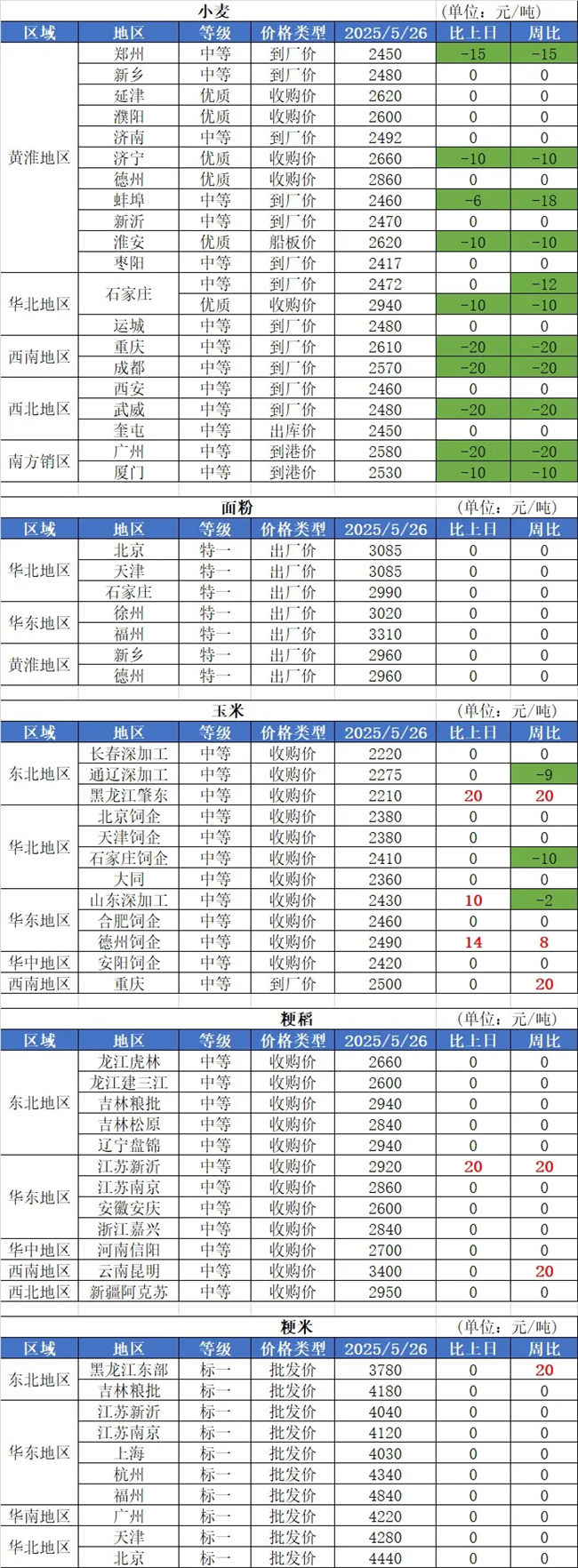 2、5月26日,國(guó)內(nèi)部分玉米深加工企業(yè)玉米收購價(jià)格調(diào)整,其中山東濰坊盛泰藥業(yè)玉米收購價(jià)格調(diào)整為2410元/噸,環(huán)比上漲10元/噸;黑龍江齊齊哈爾阜豐玉米收購價(jià)格調(diào)整為2190元/噸,環(huán)比上漲30元/噸;臨清金玉米玉米收購價(jià)格調(diào)整為2380元/噸,環(huán)比下跌10元/噸。