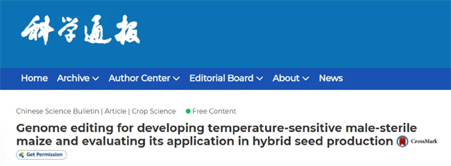 近日,中國(guó)農(nóng)業(yè)科學(xué)院作物科學(xué)研究所謝傳曉研究員團(tuán)隊(duì)在《科學(xué)通報(bào)》發(fā)表題為"基因編輯創(chuàng)制玉米溫敏型不育系及其雜交制種應(yīng)用評(píng)估"的研究論文,利用CRISPR-Cas基因編輯技術(shù)精準(zhǔn)創(chuàng)制玉米溫敏核不育系,并繪制出了基于該突變體全國(guó)生態(tài)適應(yīng)性地圖,為玉米雜交制種技術(shù)從細(xì)胞質(zhì)不育升級(jí)至細(xì)胞核不育提供了有益的探索。
