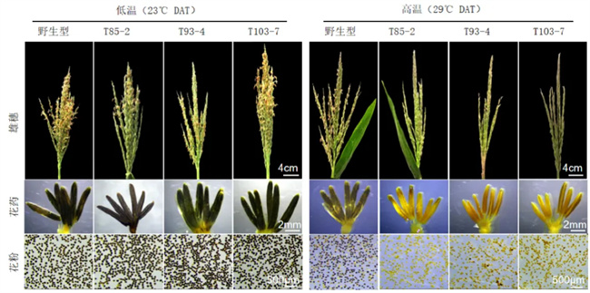 圖1.四分體時(shí)期日均氣溫(DAT)低溫與高溫時(shí)雄花育性表型