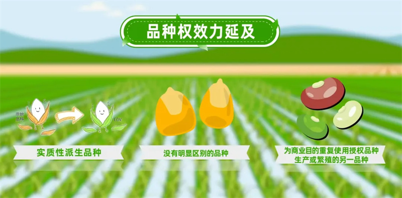 品種權(quán)效力延及實質(zhì)性派生品種、沒有明顯區(qū)別的品種、為商業(yè)目的重復(fù)使用授權(quán)品種生產(chǎn)或繁殖的另一品種。