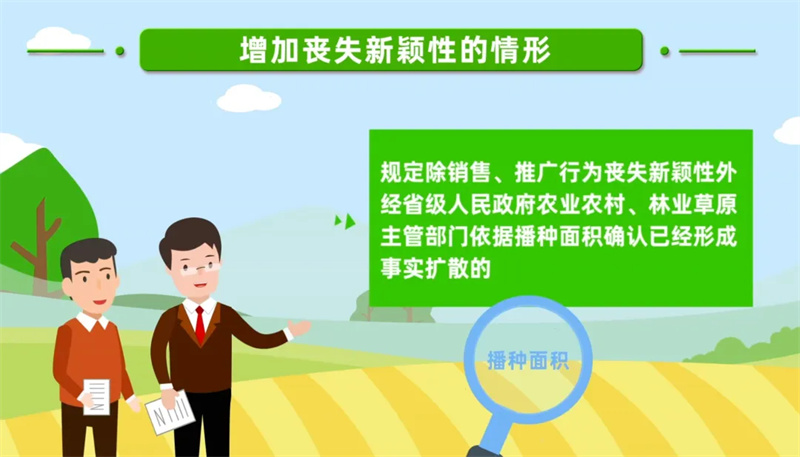 規(guī)定除銷售、推廣行為喪失新穎性外,經(jīng)省級人民政府農(nóng)業(yè)農(nóng)村、林業(yè)草原主管部門依據(jù)播種面積確認已經(jīng)形成事實擴散的,以及農(nóng)作物品種已審定或者登記2年以上未申請植物新品種權(quán)的,視為已喪失新穎性。